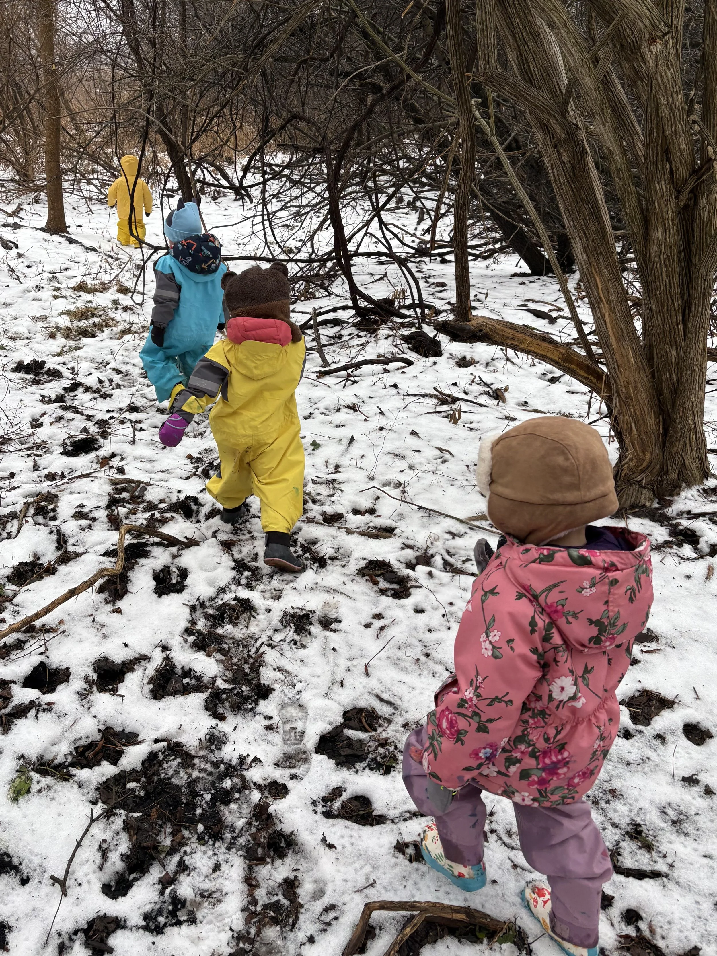 Students spend at least half their day outside exploring our 7+ acre campus, which includes wetlands, a natural playground, and ever-changing materials tailored to their interests.