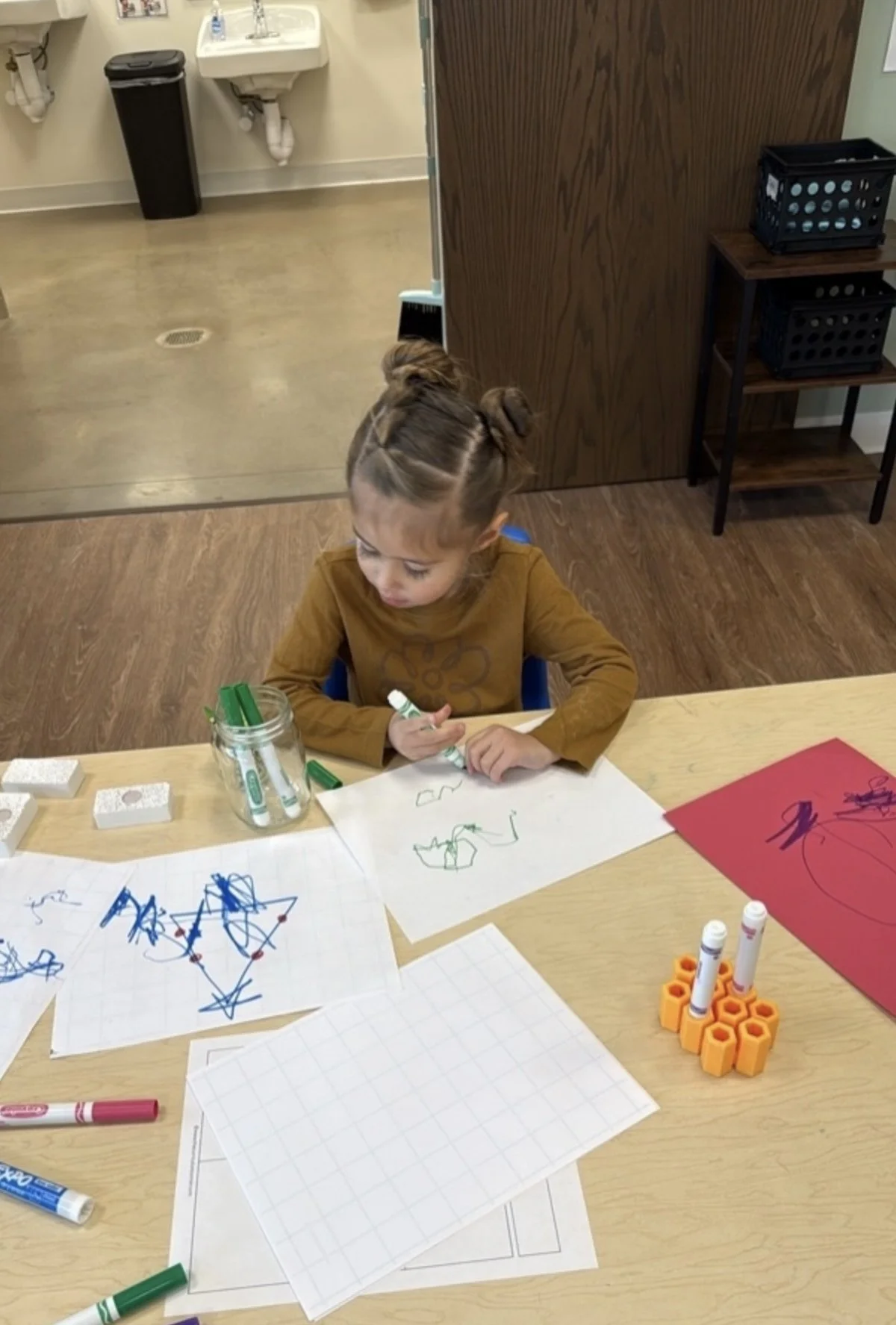 Preschoolers are becoming more intentional with their artwork as they develop fine motor skills. Using tools like crayons, markers, scissors, paint, and clay, they explore the joy of creating and expressing themselves. Whether they’re getting messy in the art room or building with materials in their indoor and outdoor classrooms, creativity thrives in every corner.